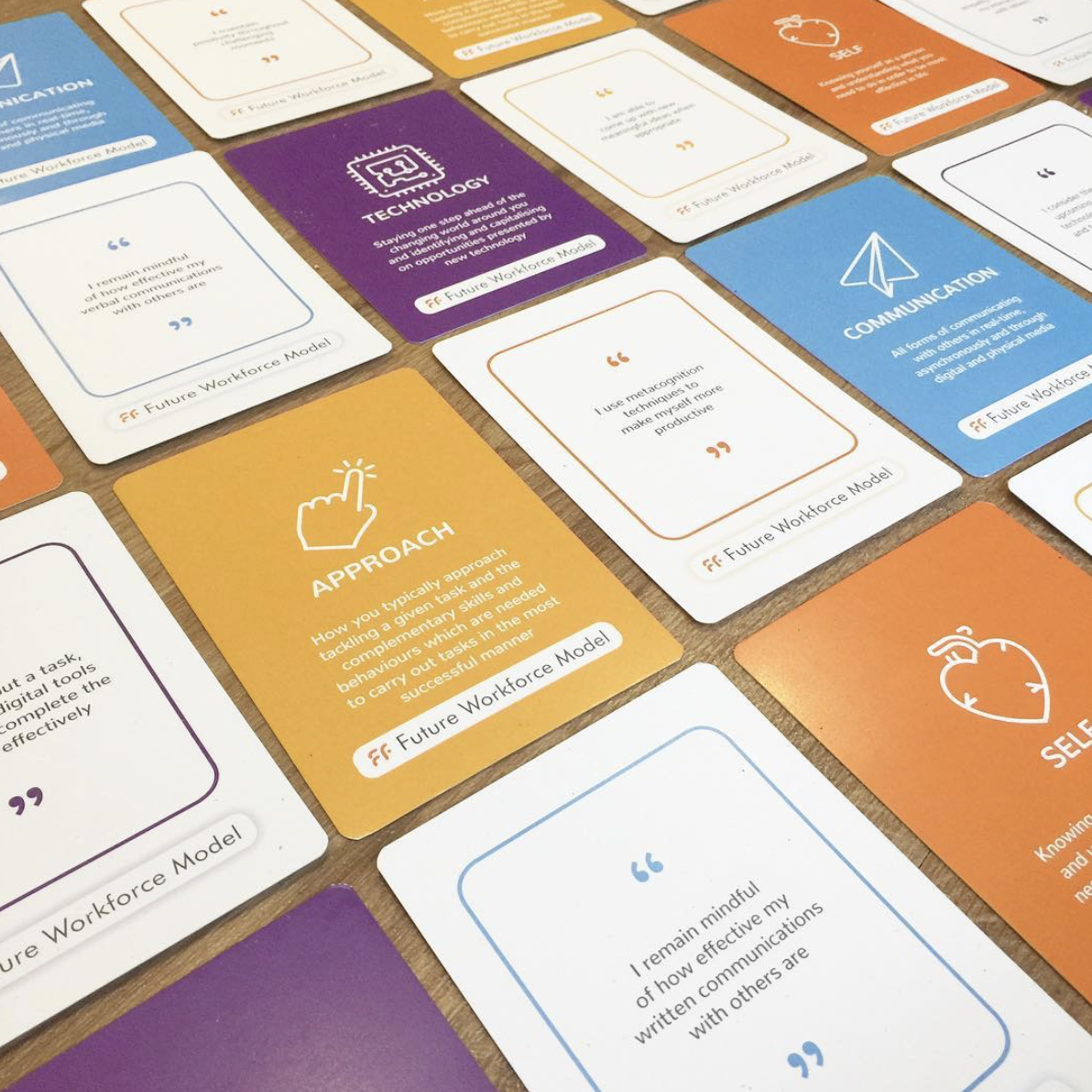 Words and user testing for card set to trial Freeformers' Future Workforce Model. Design by Emily Kerr.